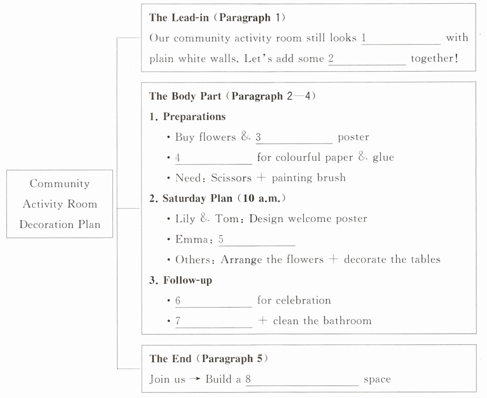 (1) Lily and Tom will make a poster with the words "Welcome to Our Community!"