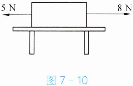 5. 如图7-10所示,桌上的木块受到大小为$5\ N$、方向水平向左的拉力和大小为$8\ N$、方向水平向右的拉力作用而运动,其效果可用一个大小为