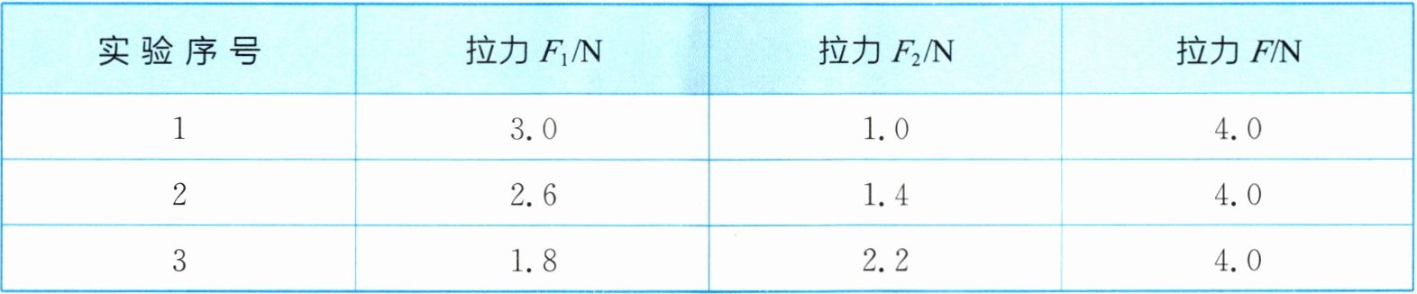 |实验序号|拉力$F_1/N$|拉力$F_2/N$|拉力$F/N$|
