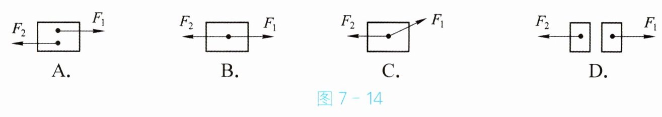 1. 若力 $ F_{1} $ 和 $ F_{2} $ 大小相等,则图 7 - 14 中这两个力相互平衡的是(