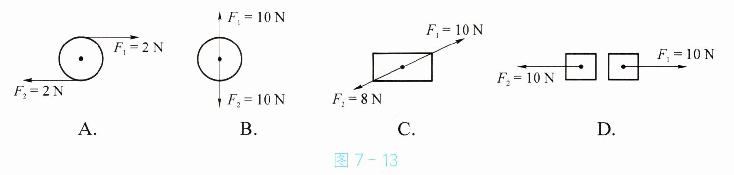 举一反三 图 7 - 13 中物体受到的两个力彼此平衡的是(