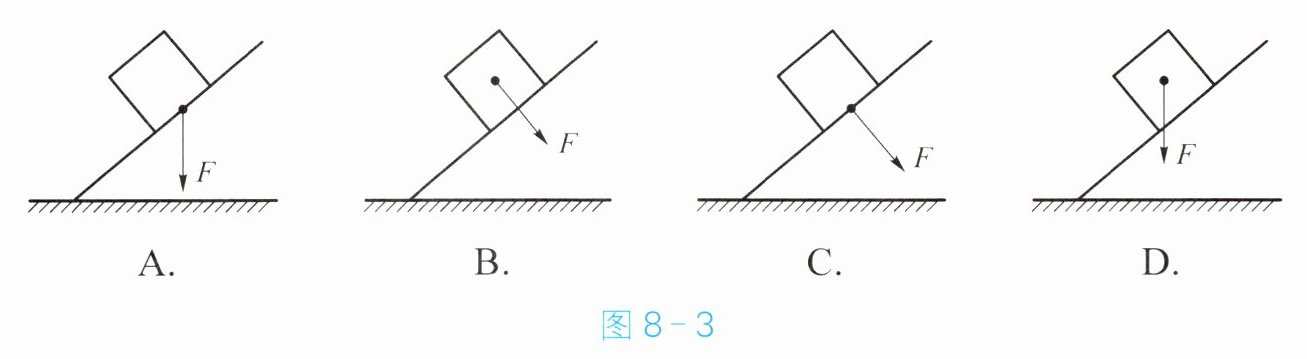2. 图8-3中能正确表示物体对斜面压力的示意图是(