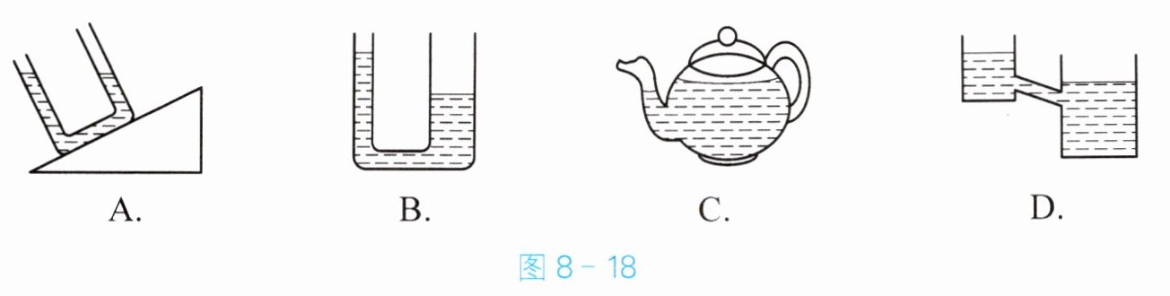 3. 图8-18中容器的底部相通,且装有同种液体,则静止时液面位置正确的是(