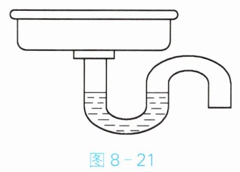 7. 如图8-21所示,洗脸盆下的U形防臭下水管是根据