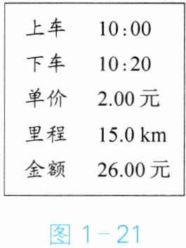 举一反三 某人在某地乘坐出租车在平直公路上行驶,图 $1 - 21$ 为他乘车到达目的地的车费发票的部分内容。求: