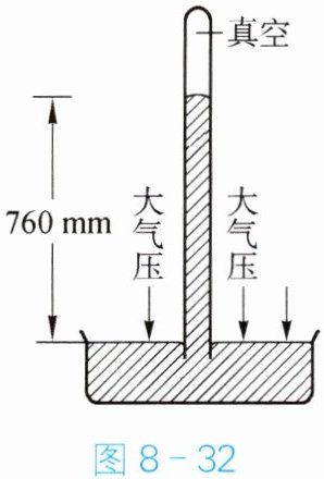 5. 图8-32是测量大气压强的实验装置,玻璃管长约1m,槽内装有汞。下列说法中正确的是(