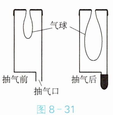 6. 如图8-33所示,用滴管吸水时,手捏橡皮管,橡皮管内的大部分空气被排出,松开橡皮管后由于管内的大气压强