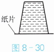 3. 图8-30是覆杯实验的情景:将一个玻璃杯灌满水,取硬纸片覆于杯口,压紧后将玻璃杯倒置,放开压住纸片的手,水和纸片不会掉下来。下列说法中正确的是(