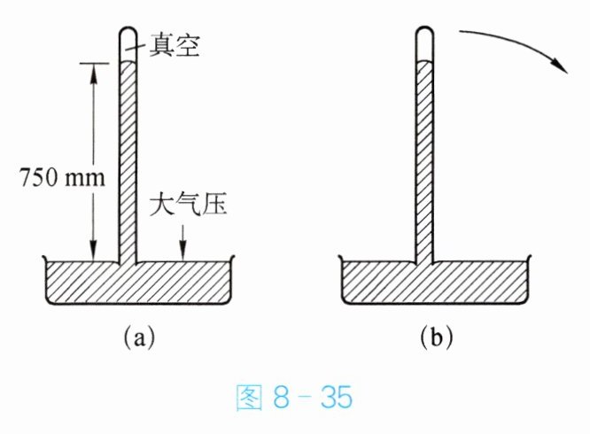 Pa(保留四位小数)。(3)实验中,若沿图8-35(b)中的箭头方向将玻璃管倾斜,则汞柱的高度将