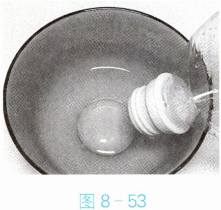 18. 打鸡蛋时,往往向碗沿碰一下,蛋壳就破了。为了分离碗中的蛋黄、蛋清,可以先用手按压空瓶子,再把瓶口贴着蛋黄(图8-53),松手后蛋黄会被吸进瓶子。请用所学的物理知识解释: