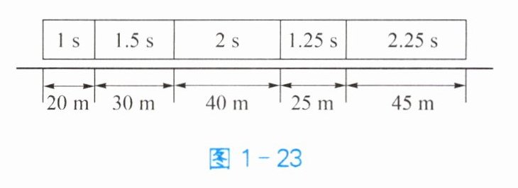 5. 一辆小汽车在平直公路上行驶,在这条公路上任意取如图 $1 - 23$ 所示的 $5$ 段路程,并将小汽车通过各段路程所对应的时间记录下来。据此可判断:小汽车在这 $5$ 段路程中做