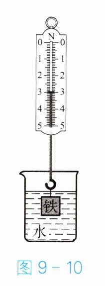 3. 小梦同学所在的学习小组在“探究浮力大小与哪些因素有关”的实验中,选用了弹簧测力计、烧杯、水、盐、细线、体积相同的实心铁块和铜块等器材进行实验(图 9 - 10)。已知ρ铁 < ρ铜,下列实验操作中,能使弹簧测力计的示数变大的是(