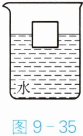 7. 如图 9 - 35 所示,将棱长$10\ cm$的立方体木块放入盛有水的烧杯中,木块静止时,其上表面距离水面$4\ cm$。下列说法中正确的是(