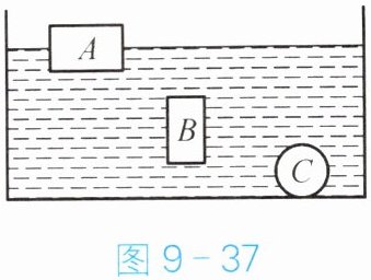 9. 已知物体$A$、$B$体积相同,物体$B$、$C$质量相同。将它们放入水中静止后,它们在水中的情况如图 9 - 37 所示。下列说法中正确的是(