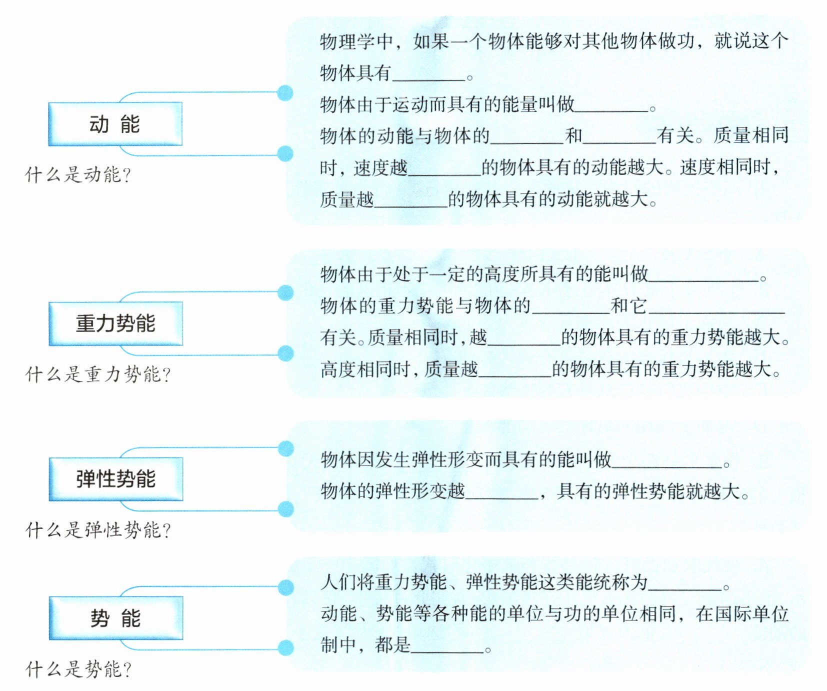 。- 动能、势能等各种能的单位与功的单位相同,在国际单位制中,都是