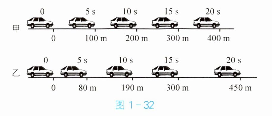 5. 图 1-32 记录了甲、乙两车在平直公路上行驶时,在某段时间内的运动过程。关于甲、乙两车在该段时间内的运动情况,下列说法中正确的是(
