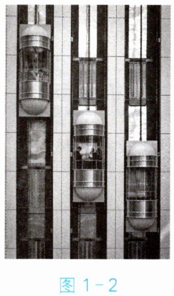 3. 如图 1 - 2 所示,某景区的观光电梯带着游客上升。电梯上升过程中,下列说法中正确的是(