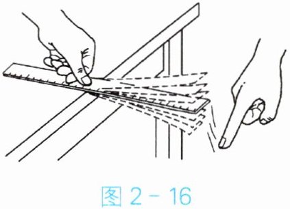 7. 如图 2 - 16 所示,将一把钢尺紧按在桌面上,其一端伸出桌面,拨动钢尺,能听到它振动发出的声音。若增加钢尺伸出桌面的长度,用相同的力拨动,则听到的声音(