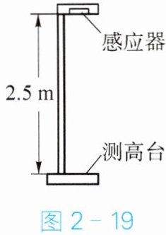 15. 图 2 - 19 为一种身高测量仪,其顶部的感应器竖直向下发射超声波信号,经下方物体反射后返回,被感应器接收。某同学站上测高台,感应器从发射到接收信号所经历的时间为 $5 × 10^{-3}$ s。已知感应器距测高台的高度为 2.5 m,空气中声音传播的速度约为 340 m/s,则该同学的身高为
