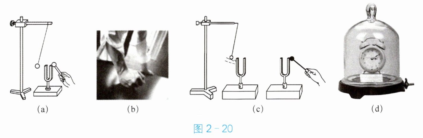 16. 在探究声音是如何产生与传播时,小明和小华一起做了图 2 - 20 中的实验。