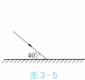 2. 如图3-5所示,一束光射到水平平面镜,光与平面镜的夹角为40°,则反射角为
