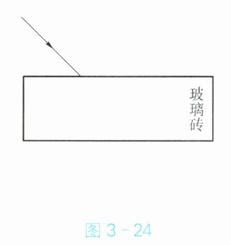 - 例题 一束光从空气斜射入一块长方体玻璃砖,请在图3 - 24中画出光经过两次折射后射到空气的大致光路图。