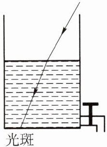 3. 如图3 - 30所示,有一束光斜射入盛水的容器,在容器底部形成光斑。保持入射光的方向不变,打开水龙头,逐渐放掉水的过程中,容器底部的光斑将(