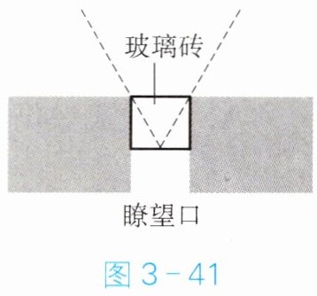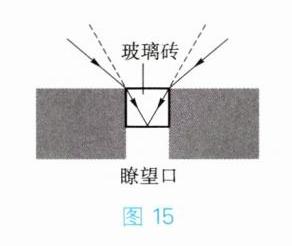 15. 图 3 - 41 是某瞭望口示意图,请简要说明为什么在瞭望口嵌入玻璃砖后,其观察范围变大了。(可画图并用文字简要说明)