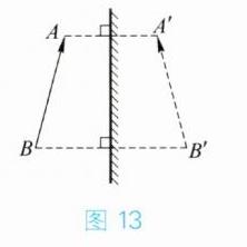 13. 请利用平面镜成像的特点,在图 3 - 39 中画出 AB 在平面镜中的像。