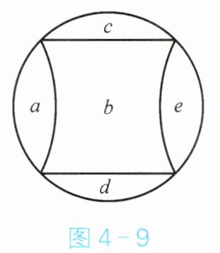 2. 把一个透明且均匀的玻璃球切成 $ a $、$ b $、$ c $、$ d $、$ e $ 五部分,其截面如图4-9所示。其中属于凸透镜的是(