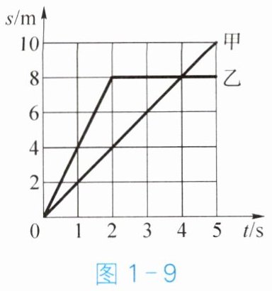 甲、乙两物体同时从同一地点沿直线向相同方向运动,它们运动的路程$s随时间t$变化的图像如图1-9所示。下列说法中正确的是(