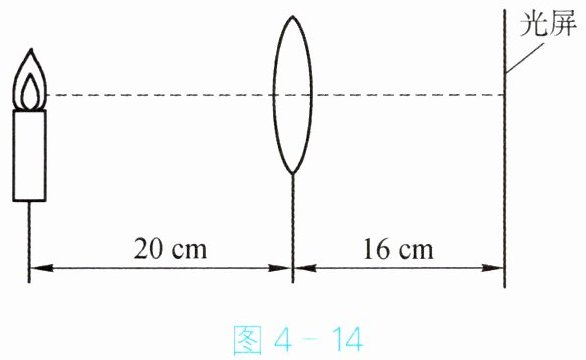 - 举一反三 如图$4 - 14$所示,一蜡烛放在凸透镜一侧的某个位置,在另一侧的光屏上得到了一个清晰的像。若将蜡烛与光屏的位置对调,则在光屏上能得到一个
