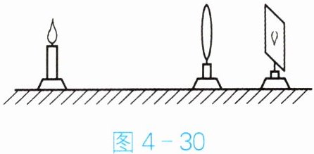 9. 用图$4 - 30$中的装置模拟人眼成像的情况,此时烛焰在光屏上成清晰的像,将蜡烛远离凸透镜时,光屏上的像变模糊。若用此实验模拟人眼的调节功能,要重新在光屏上得到清晰的像,应该进行的操作是(