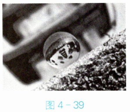 14. 如图4-39所示,小明将透明玻璃球放在距眼睛稍远的位置,透过它能看到远处建筑物倒立、缩小的像,请你解释这个现象。