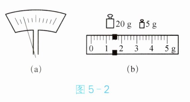 。调节天平平衡时,指针位置如图 5 - 2(a)所示,此时应将平衡螺母向右