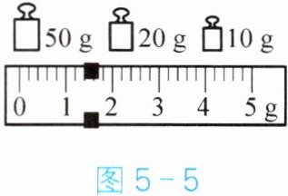 5. 某同学用托盘天平测量一个物体的质量,测量完毕后才发现自己错误地将物体放在了右盘,砝码放在了左盘。但他不想重测,想根据测量数据来推测物体的质量。他记得所用砝码情况和游码所在位置如图 5 - 5 所示,则物体的质量是(