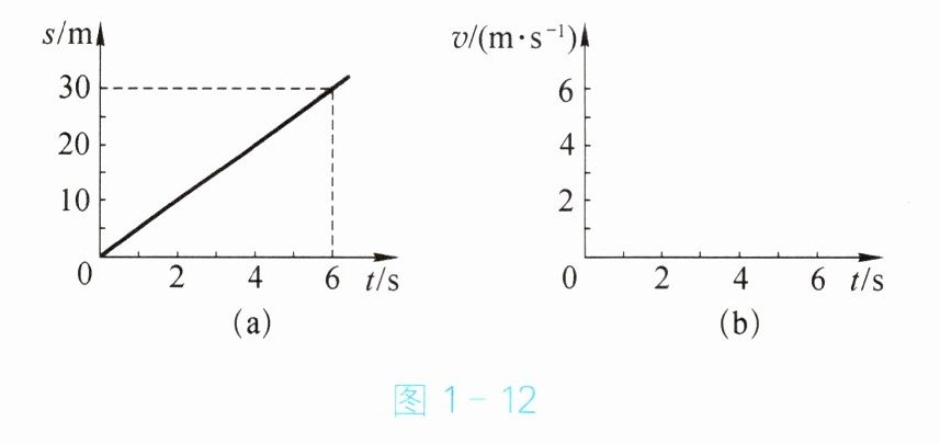 9. 一物体做匀速直线运动,其运动的路程$s随时间t$变化的图像如图1-12(a)所示。请根据图1-12(a),在图1-12(b)中画出物体运动的速度$v随时间t$变化的图像。