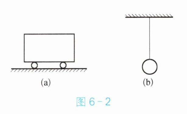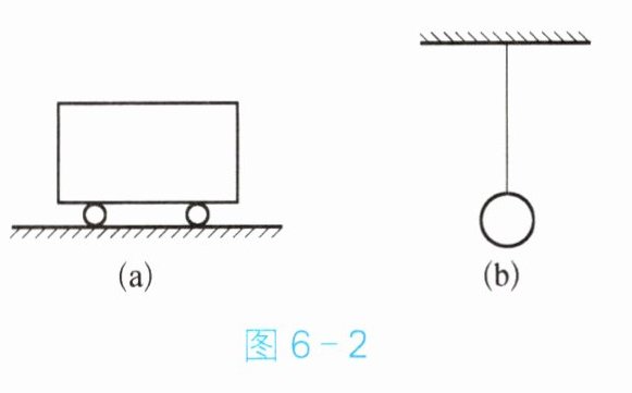 5. 请在图 6 - 2(a)中画出车受到水平向右的推力 $ F $ 的示意图;在图 6 - 2(b)中画出线对小球的拉力 $ F $ 的示意图。