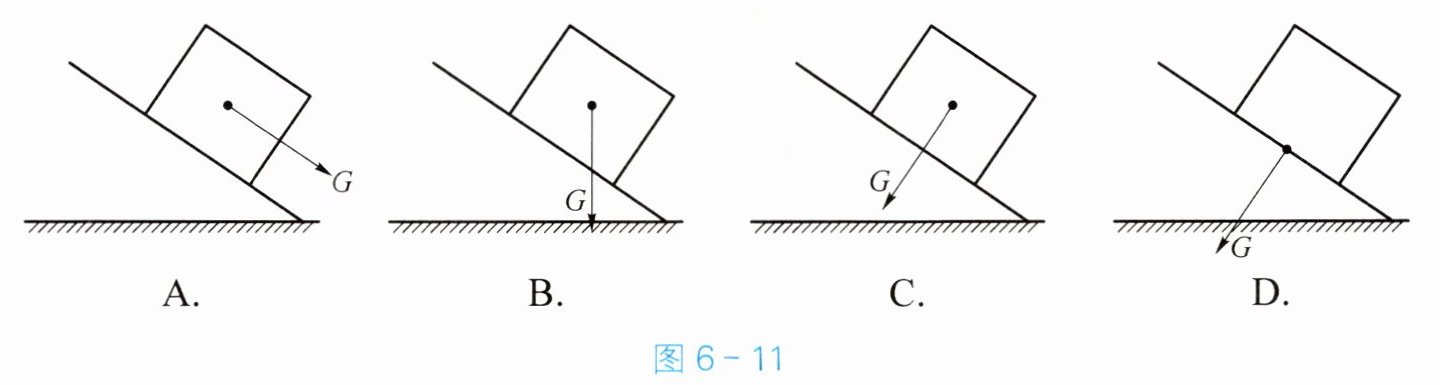 4. 一木块放置在斜面上,图 6 - 11 为该木块所受重力的示意图,其中正确的是(
