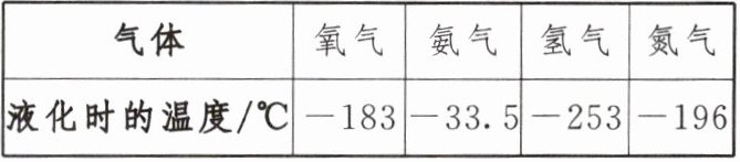 4. 当气体的温度降低到一定程度时就会变成液体,人们把这种变化过程叫作液化. 以下是几种常见气体液化时的温度(标准大气压):