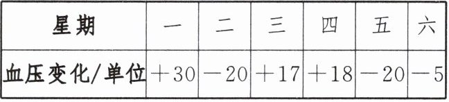 14. 某病人每天下午需要量血压,下表为该病人周一到周六收缩压的变化情况. 已知该病人上周日的收缩压为$160$单位(正号表示血压比前一天上升,负号表示血压比前一天下降),则该病人本周收缩压最低的是在(