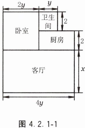 18. 王老师买了一套房,他准备将地面铺上地砖,地面结构如图4.2.1 - 1所示。请根据图中数据(单位:m),解答下列问题: