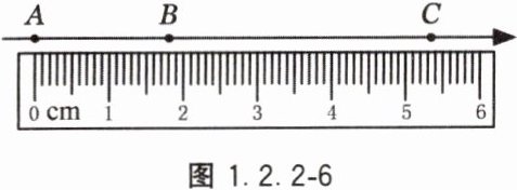 15. 如图 1.2.2 - 5,点$A$,$B$,$C$是数轴上从左到右排列的三个点,分别对应的数为$-2$,$b$,$4$。某同学将刻度尺如图 1.2.2 - 6 放置,使刻度尺上的数字$0$对齐数轴上的点$A$,之后发现点$B$对应刻度$1.8cm$,点$C$对应刻度$5.4cm$,则数轴上点$B$所对应的数$b$为(