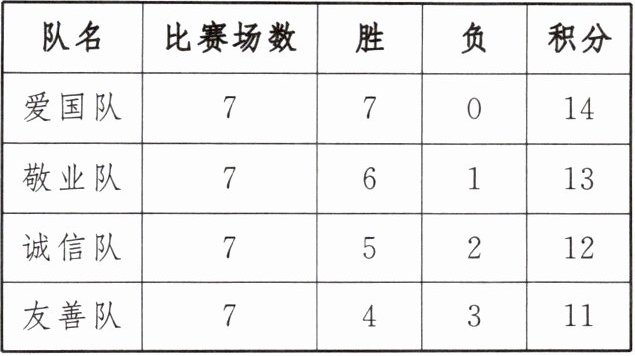 4. 某市一次篮球赛的前四强积分榜如下表所示: