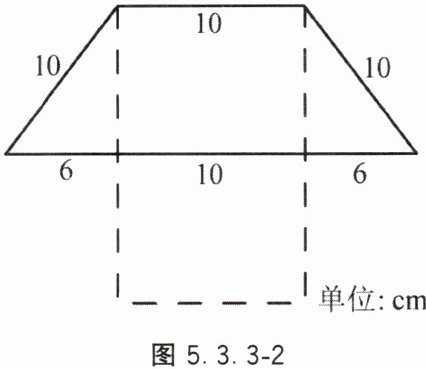 7. 如图 5.3.3 - 2,墙上钉着一根用彩绳围成的梯形状的饰物(实线部分),现小明将梯形下底的钉子去掉,并将这条彩绳钉成一个长方形(如图中虚线所示). 请问:小明所钉长方形的长、宽各为多少厘米?