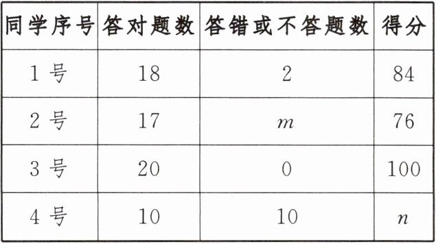 5. 某小组四名同学参加知识竞赛,共答 20 道题,每题分值相同,答对得分,答错或不答扣分,下面是他们的得分情况: