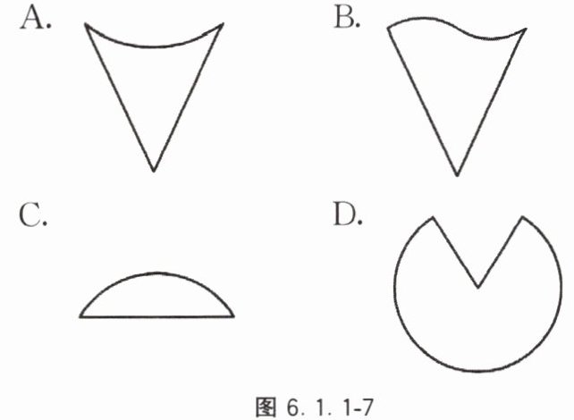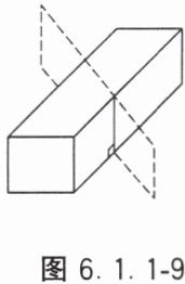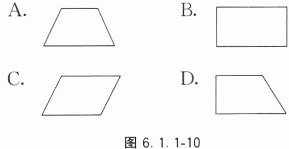 11. 在木材加工厂,我们见到如图6.1.1 - 9所示的一块长方体木头被锯开,想象沿虚线所示位置截下去,所得到的截面图形是图6.1.1 - 10中的(
