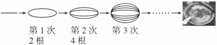 (2)由于$128=2^{7}$,因此若拉出128根细面条,则捏合的次数是7,故捏合了7次.