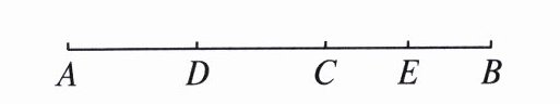 6. 如图,$ C $ 是线段 $ AB $ 上一点,$ D $ 是 $ AC $ 的中点,$ E $ 是 $ CB $ 的中点,若 $ AD = 3 $,$ AB = 10 $,则 $ DE = $( )
