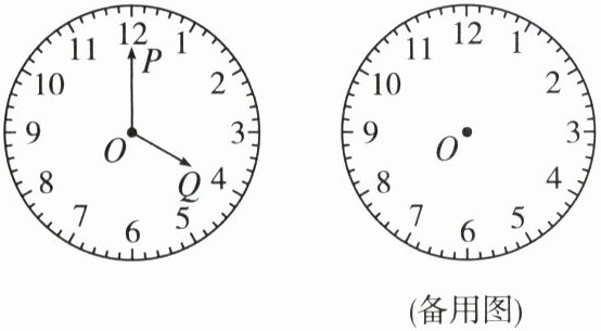 19. 钟表是我们日常生活中常用的计时工具. 如图,在圆形钟面上,把一周等分成 12 个大格,每个大格等分成 5 个小格,分针 $ OP $ 和时针 $ OQ $ 均绕中心 $ O $ 匀速转动.(本题中的角均指小于 $ 180^{\circ} $ 的角)